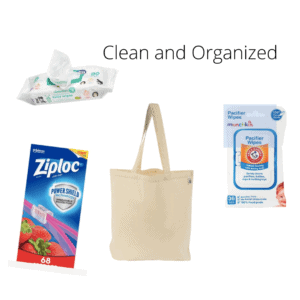 Bags, bags and more bags. You can never have enough grocery bags (plastic or reusable) or ziplock bags when driving distances with a baby. The 9am spit up incident will be less problematic by 9pm if that onesie is sealed away in a ziplock bag until it can be washed.